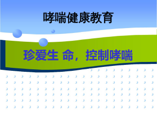 珍爱生命,控制哮喘哮喘是什么?哮喘是一种慢性支气管疾病,患者的支气管因过敏性炎症而变得肿胀及狭窄令呼吸不顺畅.哮喘:全球的问题全球3亿哮喘患者哮喘发病率和严重程度不断增加每年18万患者死于哮喘医疗使用和费用非常高GINA2004深受大家喜爱的歌手邓丽君就是一位哮喘患者,在哮喘急性发作时由于治疗不当,最终导致死亡美国跳水名将洛加尼斯,同样也是一位哮喘患者,但由于对自身疾病的认识和良好治疗,一样可以同其他选手在赛场上一比高低,摘金夺银同样还有美国田径全能乔伊纳,虽然也是一位哮喘患者,但由于能够很好地进行治疗,一样也能在赛场上拼搏,驰骋同样还有大家所熟悉的香港明星:谢霆锋,郑秀文,他们也都...